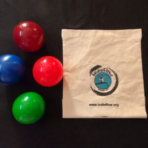 90mm/100mm balls which are perfect to get started with contact juggling. Sold individually, and comes with an IndieFlow carry bag.