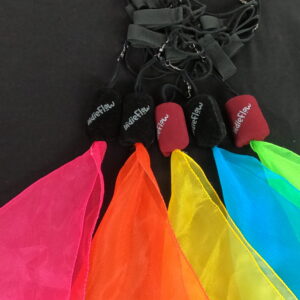 Scarf Poi are poi with beautiful, flowy trails that provide a magical feeling. If you’re looking to get started with Poi, these are both vibrant and easy to flow with, making it great for beginners. This is our second and updated edition of these beauties, tested by Yacobeh and various other flow artists, and includes improvements in terms of feel and make. Well weighted, premium loop handles, durable fabric that flies well – these scarf poi are a pleasure to spin 🙂